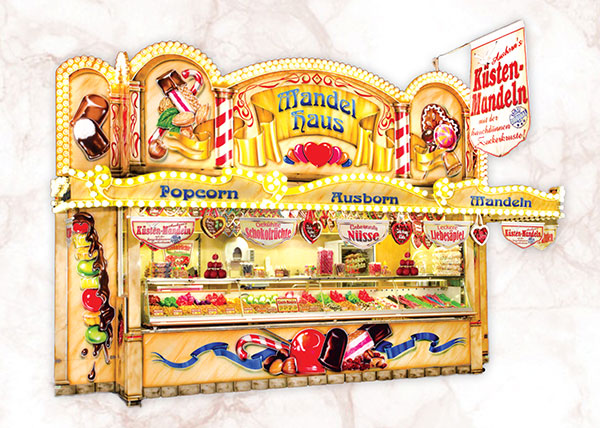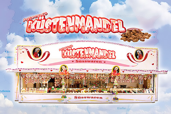 Eine große Auswahl an internationalen Nüssen aus aller Welt (Walnuss, Cashewnuss, etc.) kandierte Früchte, Popcorn, Zuckerwatte, Lebkuchen-Herzen und ausgewählte Marken-Süßwaren runden das Angebot ab.